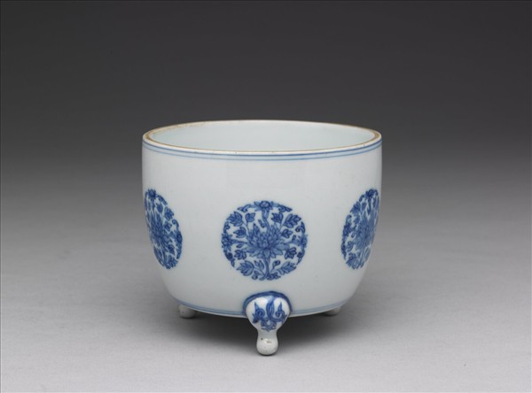 青花團花紋三足爐