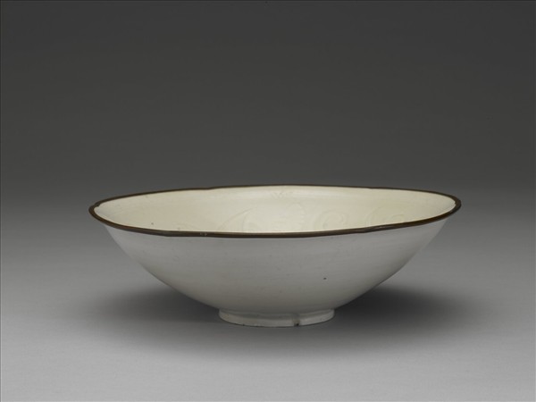 定窯 白瓷劃花蓮花紋葵瓣口碗