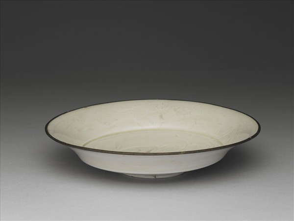 定窯 白瓷劃花雙鳧紋盤