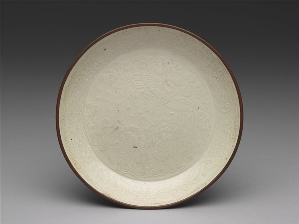 定窯 印花孔雀雲螭盤
