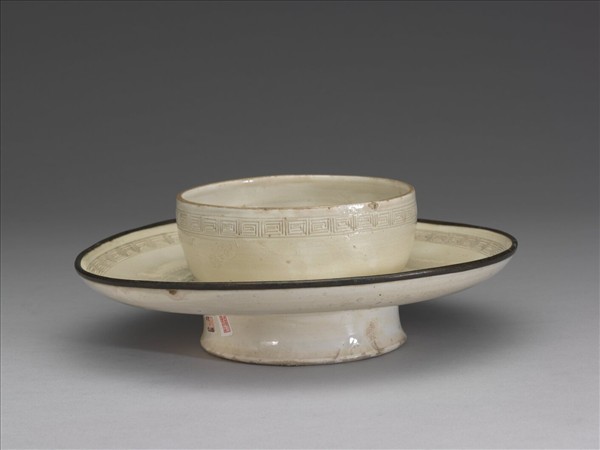 定窯 白瓷劃花回紋盞托