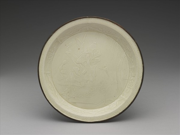 定窯 印花孔雀蕉石圖折沿盤