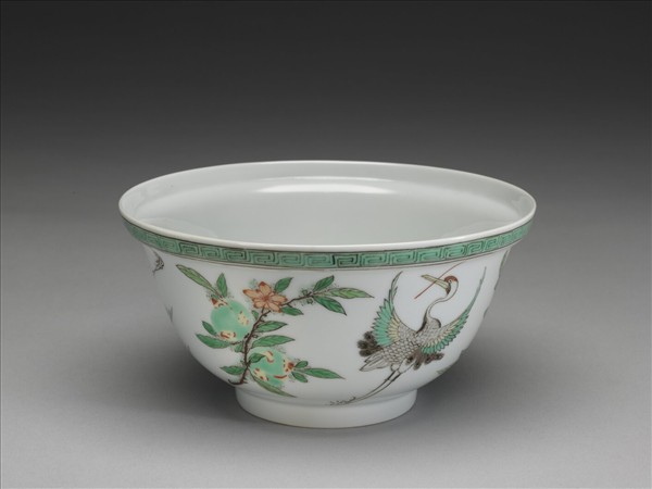 五彩鶴桃紋碗