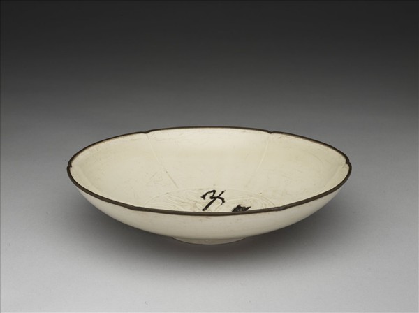 定窯 白瓷劃花蓮花紋葵花式盤
