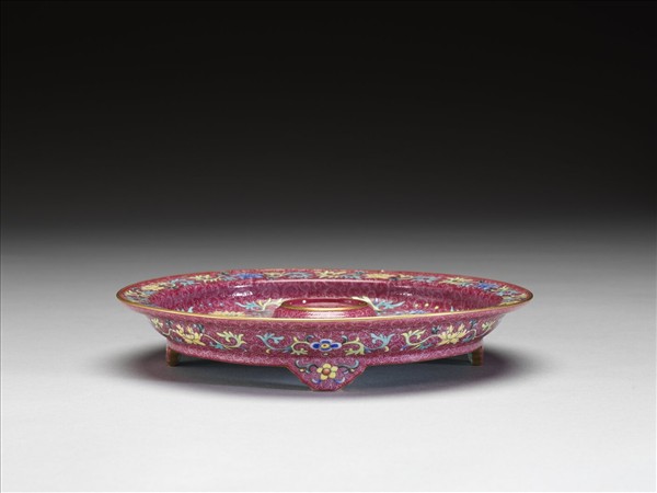 紅地琺瑯彩開光山水托盤