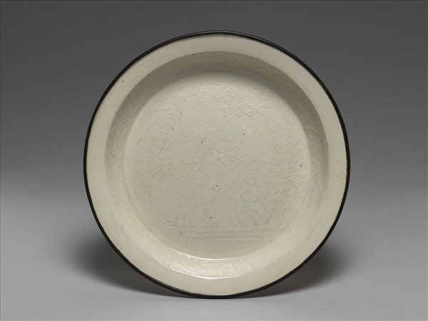 定窯 印花牡丹雉雞圖盤
