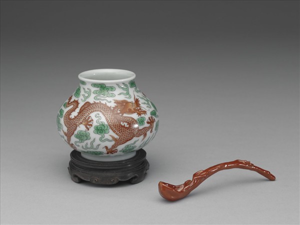 綠彩紅龍水盛及水匙