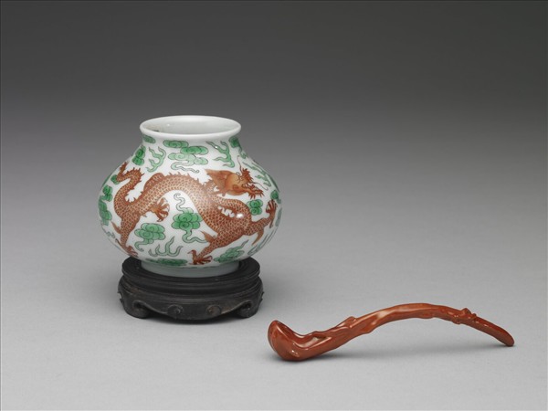 綠彩紅龍水盛及水匙