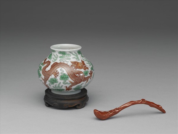 綠彩紅龍水盛及水匙