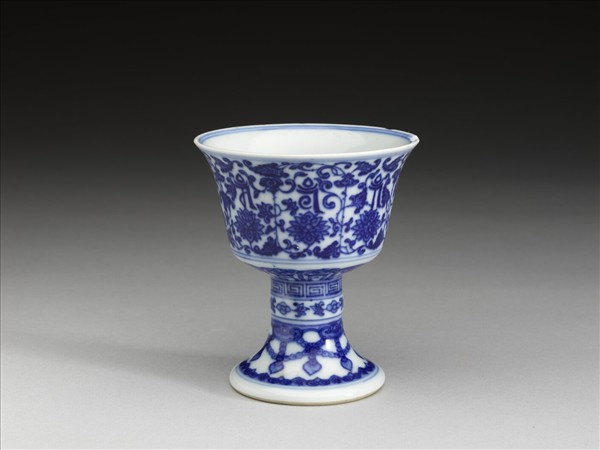 青花梵文番蓮紋高足杯