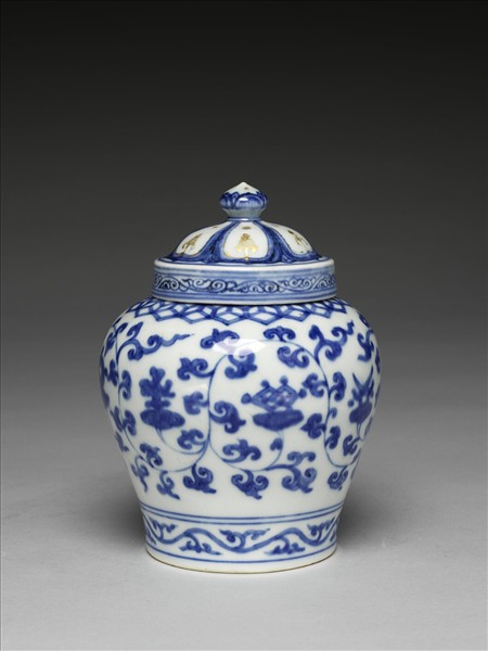 青花番蓮八寶紋蓋罐