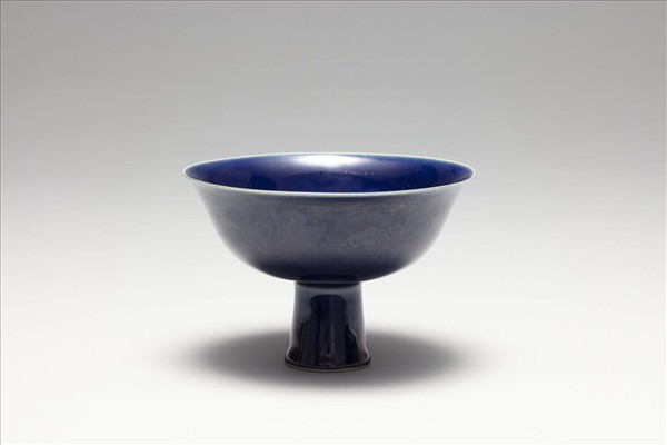 霽青釉暗花雲龍紋高足碗