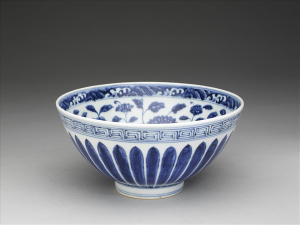 青花蓮瓣花卉紋大蓮子碗