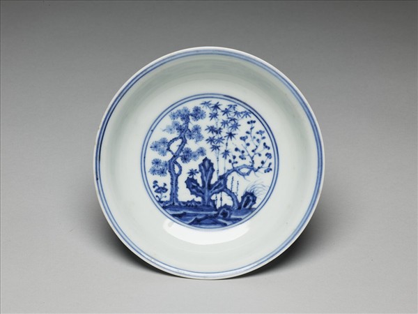 青花歲寒三友圖盤