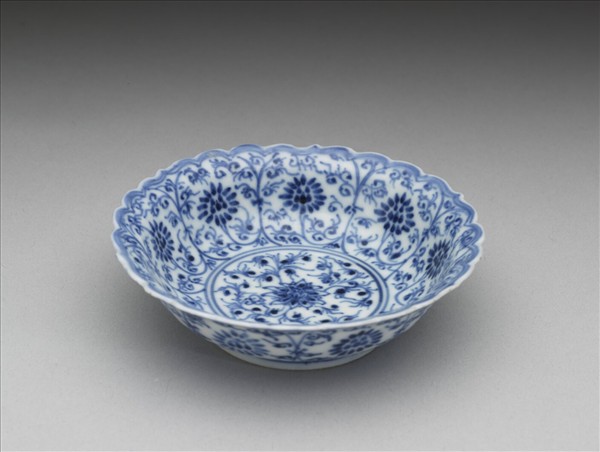青花番蓮紋菊瓣口碟