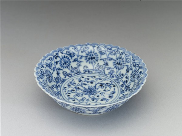 青花番蓮紋菊瓣口碟