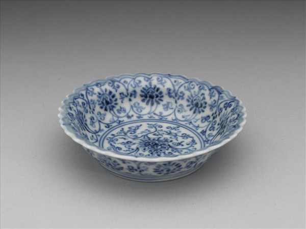 青花番蓮紋菊瓣口碟