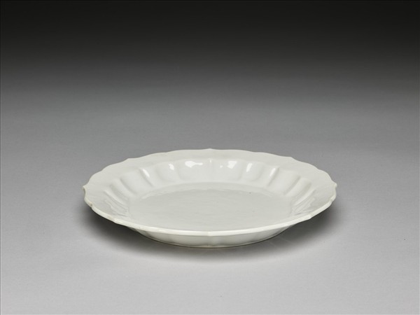 白瓷劃花花卉紋葵瓣口盤