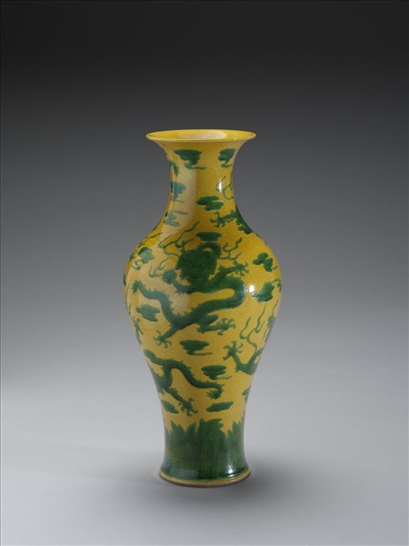 黃地綠彩五龍紋瓶