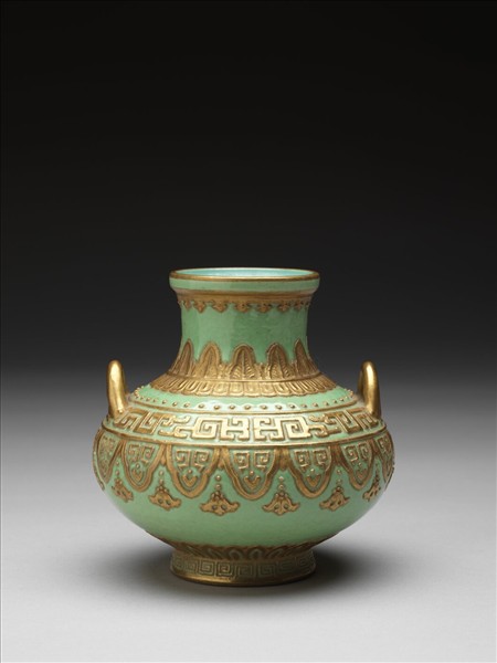 綠地金彩夔紋雙耳壺