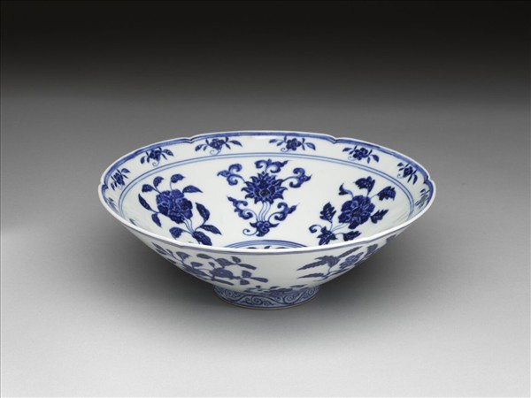 青花四季花果紋葵瓣口碗