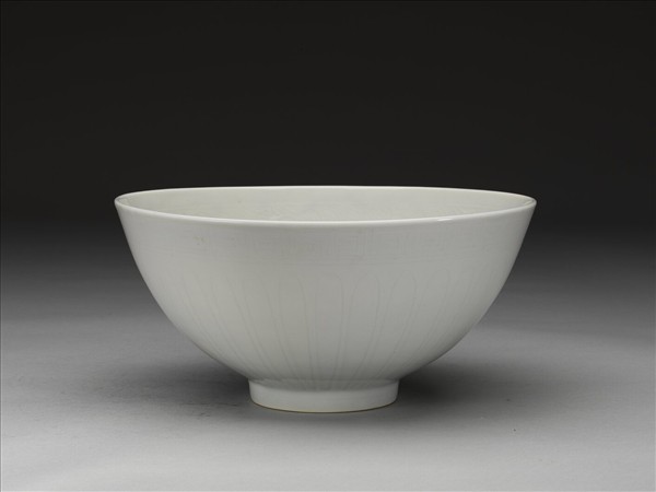 甜白釉劃花四季花卉紋碗