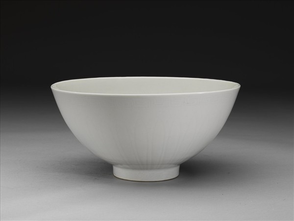 甜白釉劃花四季花卉紋碗