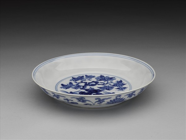 青花樹石圖盤