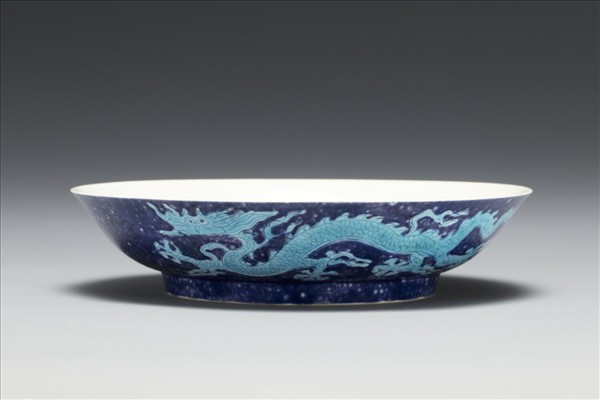 灑藍地孔雀綠彩雲龍紋盤
