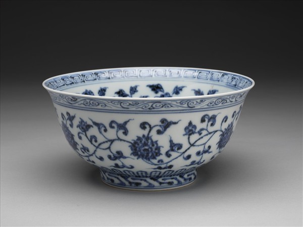 青花轉枝番蓮紋碗