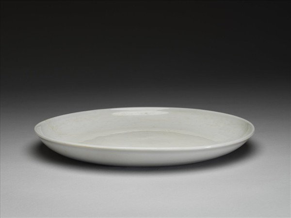 甜白釉劃花轉枝番蓮紋梵文盤