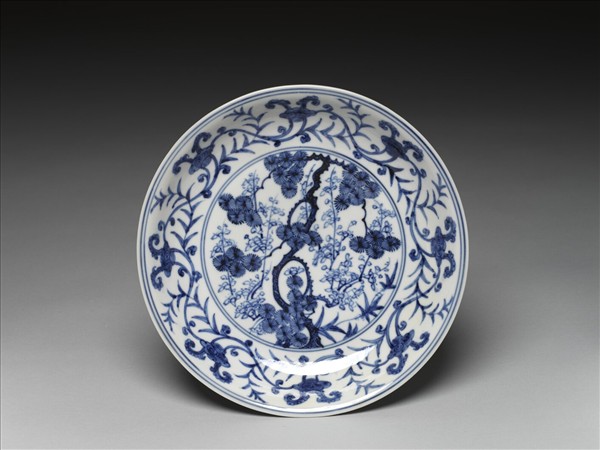 青花靈芝松樹紋盤
