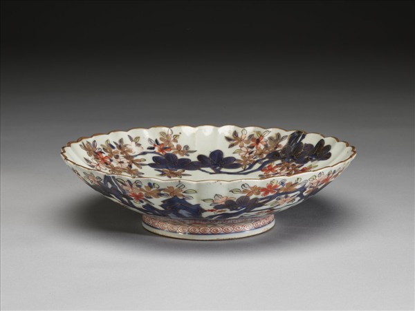 有田窯 五彩花卉紋菊瓣式盤