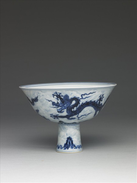 青花雙龍紋高足碗