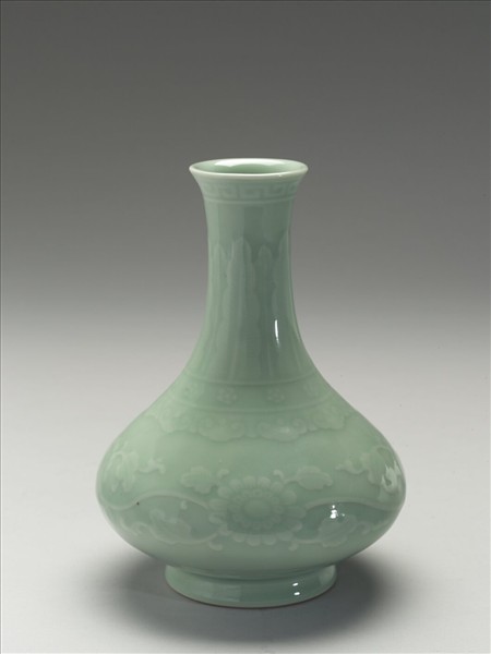 青瓷刻花菊花紋長頸瓶