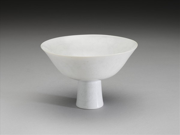 青白瓷劃花番蓮紋高足碗