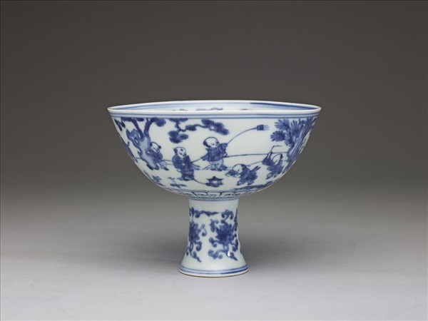 青花嬰戲高足碗