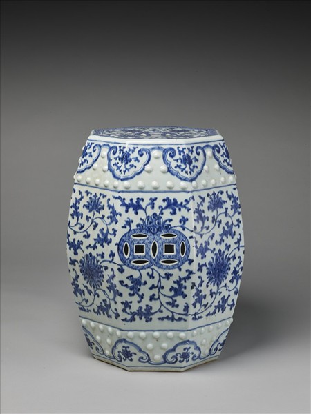 青花番蓮紋八方墩