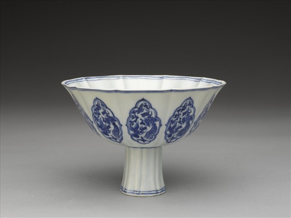 青花鳳凰紋花口高足碗