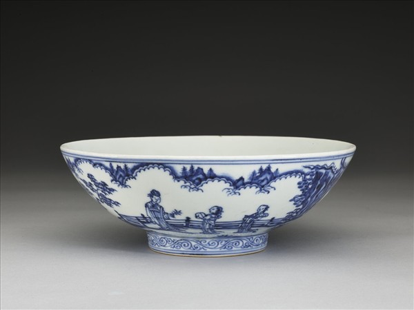 青花山水仕女圖碗