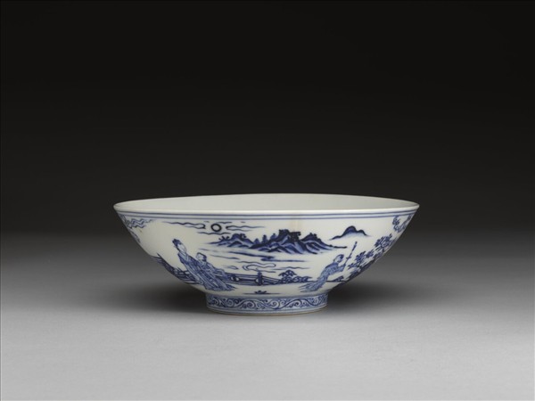 青花山水仕女圖碗