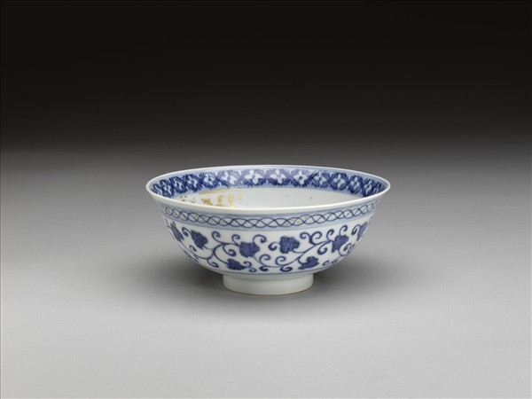 官窯 青花蓮花紋描金碗