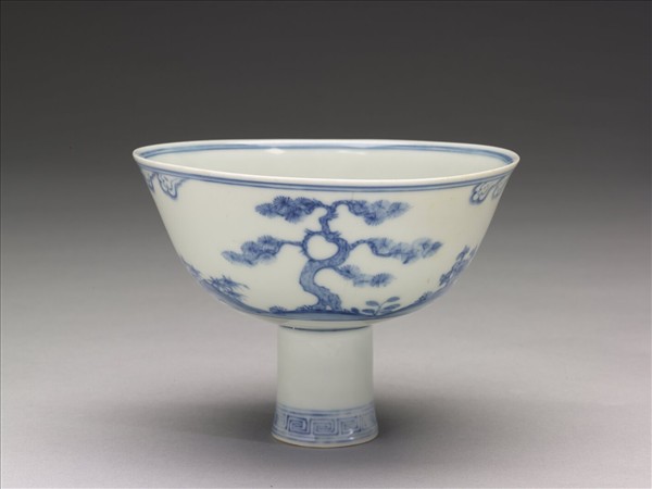官窯 青花歲寒三友高足碗