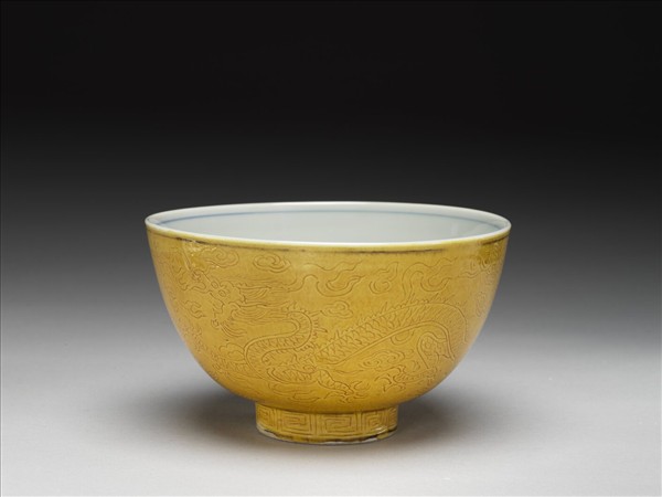 嬌黃白裡龍紋碗