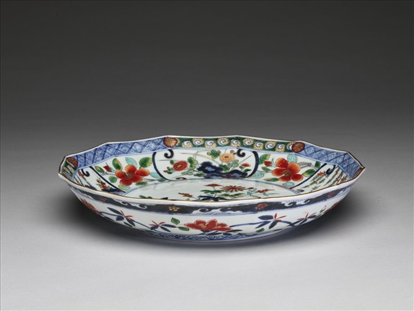 有田窯 五彩花卉紋十二方盤