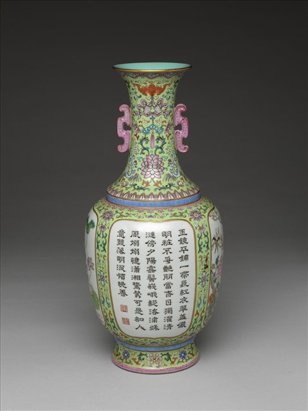 粉彩詩文花卉雙耳瓶