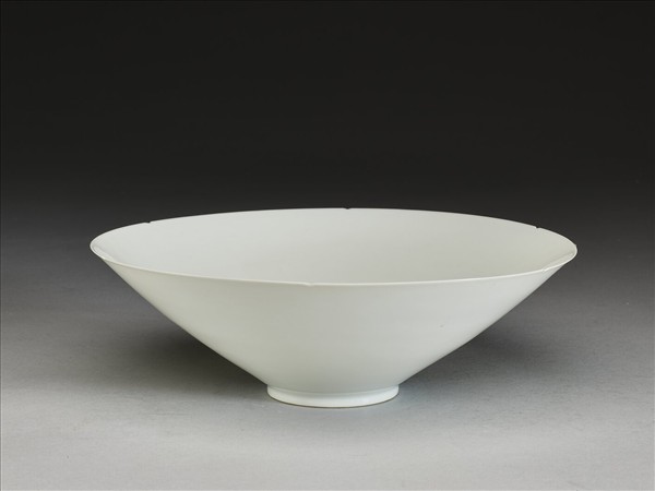 甜白釉暗花番蓮八寶紋葵口碗