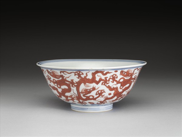 青花描紅九龍紋碗