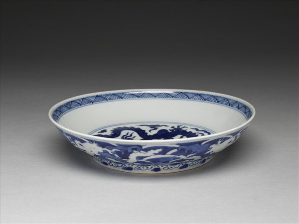 青花波濤龍紋盤