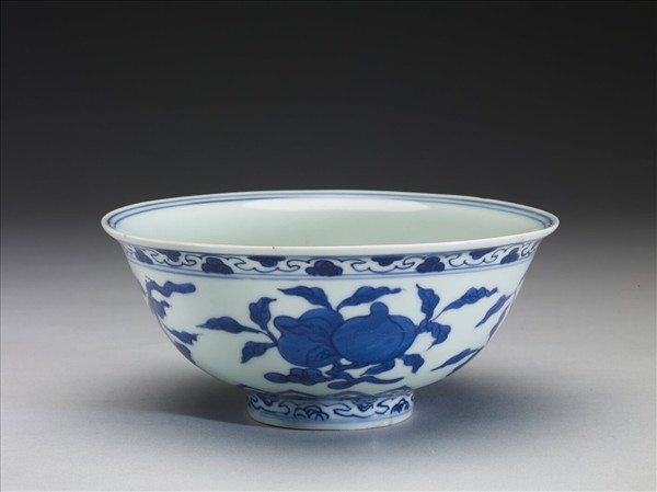 青花花果壽字紋碗